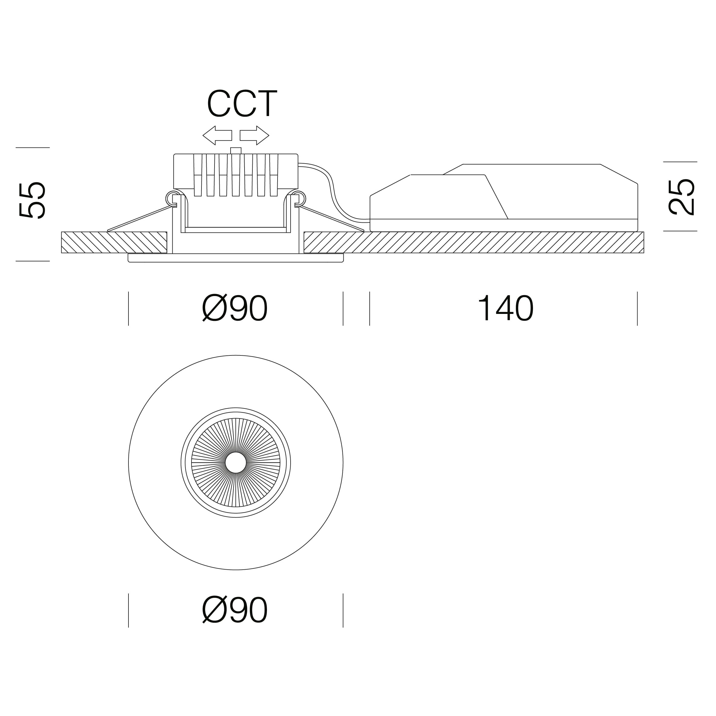 CLD | 0.3 kg | 888 lm - 3000 K - >90 | 38 ° | 10 W | 90 mm | Negro | |